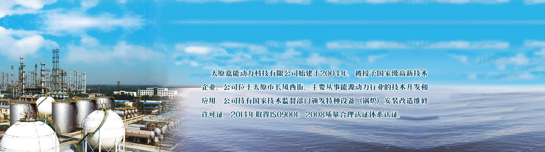 太原嘉能動力科技有限公司始建于2004年。公司位于太原市長風西街50號,主要從事能源動力行業的技術開發和應用。并被授予高新技術企業。自公司成立以來,先后取得了****技術監督部門頒發特種設備(鍋爐)安裝改造維修許可證;特種設備(B級鍋爐)制造許可證;特種設備(R1、R2級壓力容器)制造許可證。是低品位余熱利用和鍋爐改造的專業公司,已擁有十多項專利,目前在全國處于領先地位